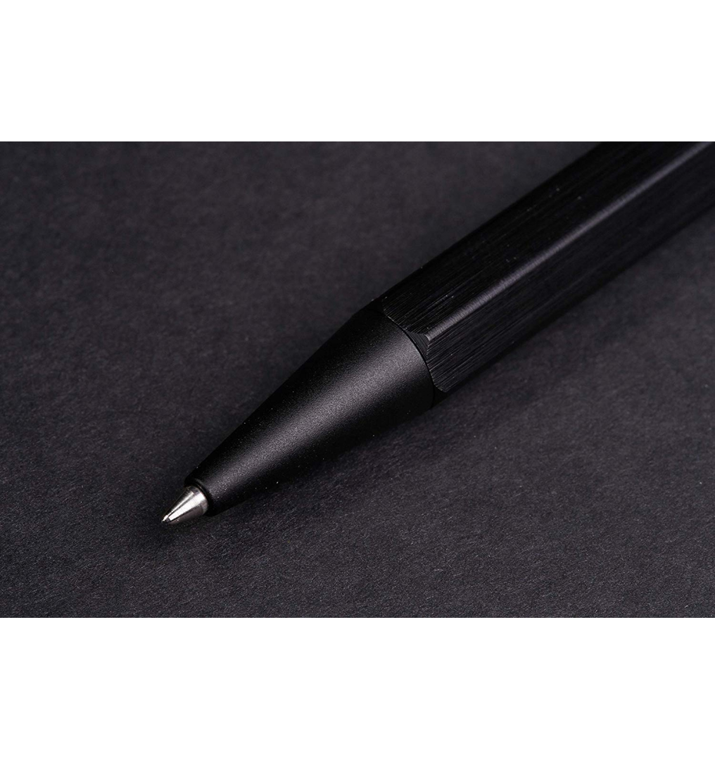 Simple, refined, timeless. Sleek brushed aluminum body in black or iconic Rhodia orange. Retractable ballpoint pen measures 5".